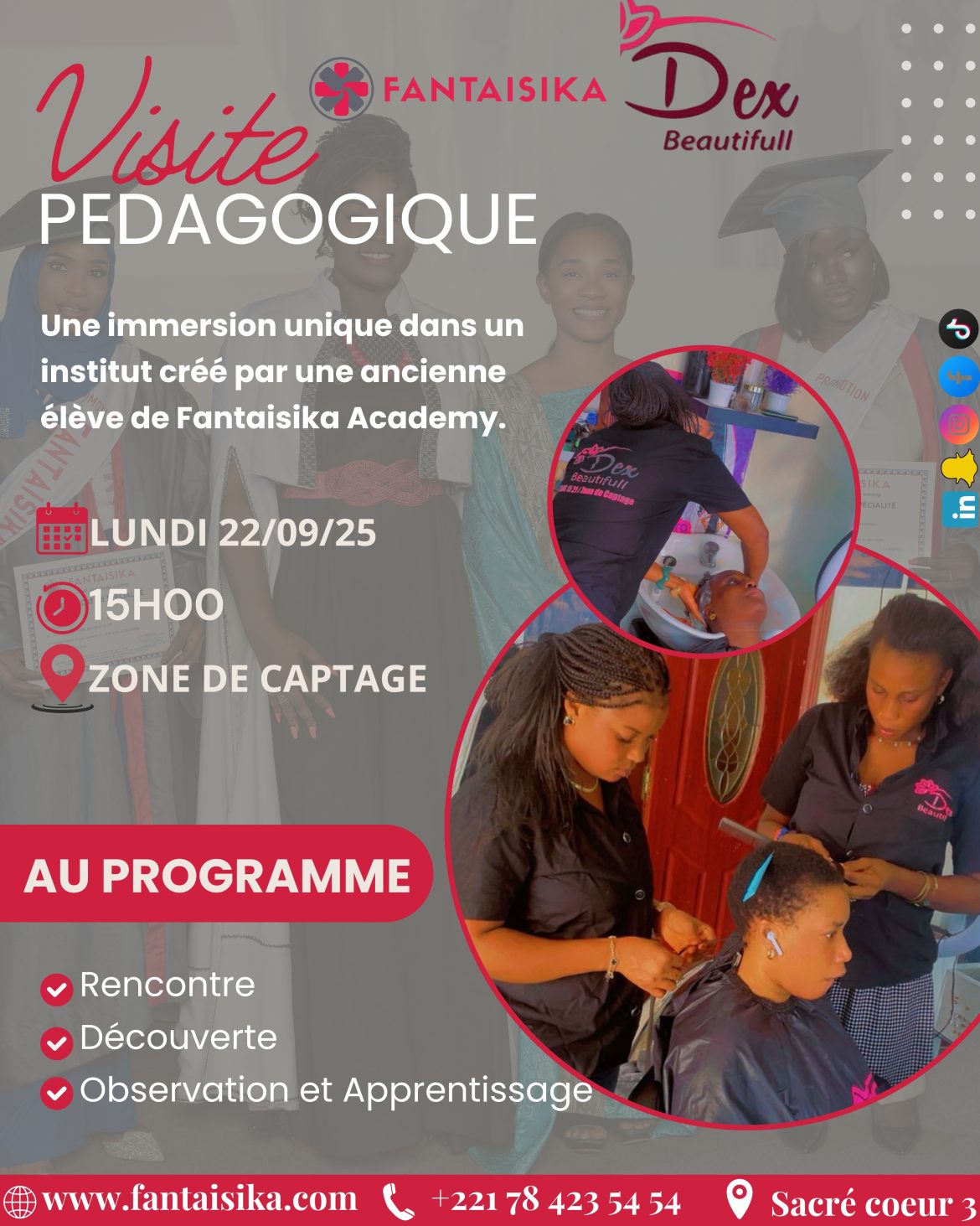 Nos élèves de FANTAISIKA Academy partent ce lundi 22 septembre à 15h en visite pédagogiqu à l’Institut Dex Beautifull (Zone de Captage), fondé par une ancienne élève.